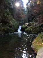 Nad údolím se nachází vyhlídka Sokolohrady, poblíž najdeme zbytky původního hradu Sokolov ze 13. století. Na protějším svahu přes řeku skalní věž "Čertův stolek" s vyhlídkou.